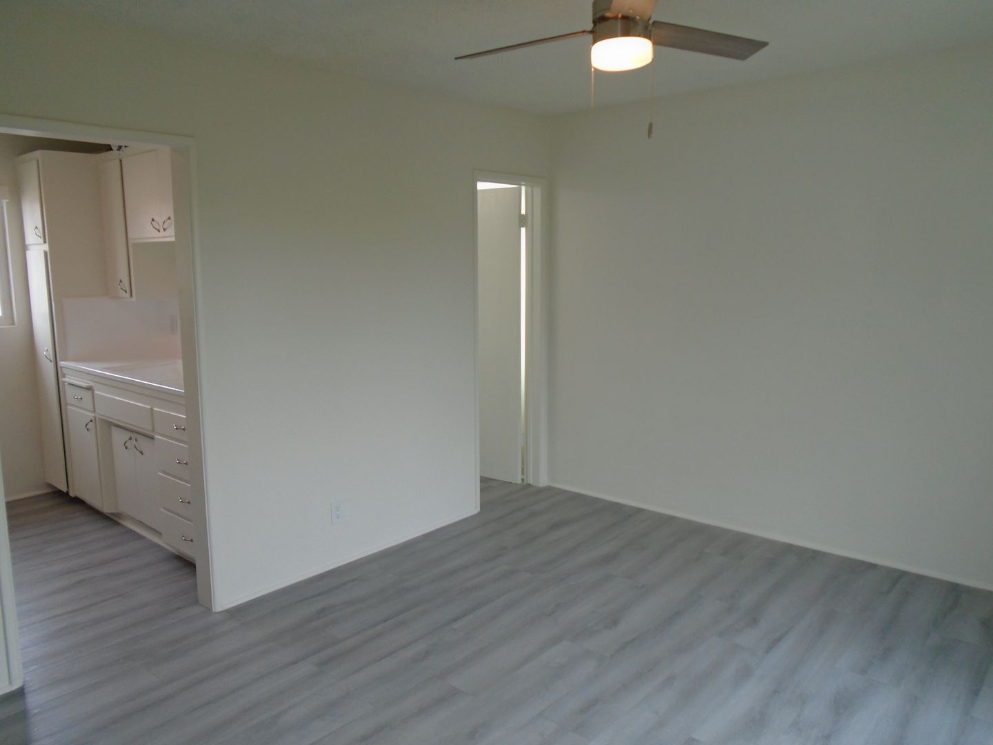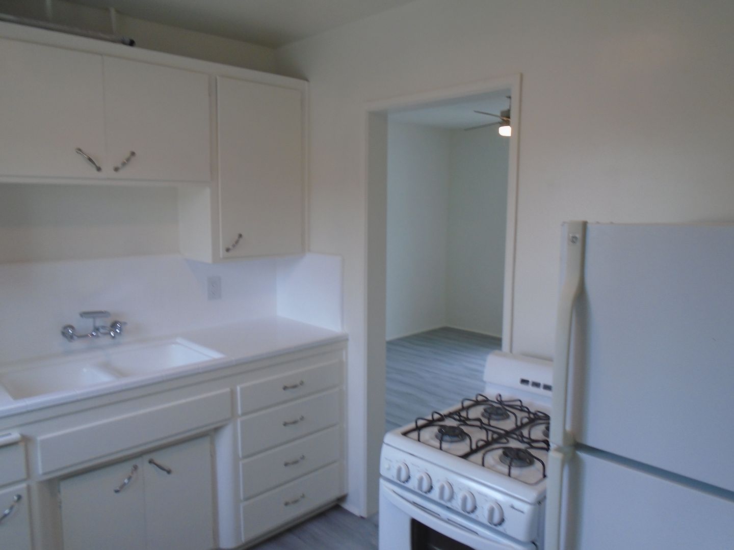 Welcome to our newly renovated studio! We have completely transformed it with a fresh paint job, new flooring, stylish verticals, and even added a stove and refrigerator.