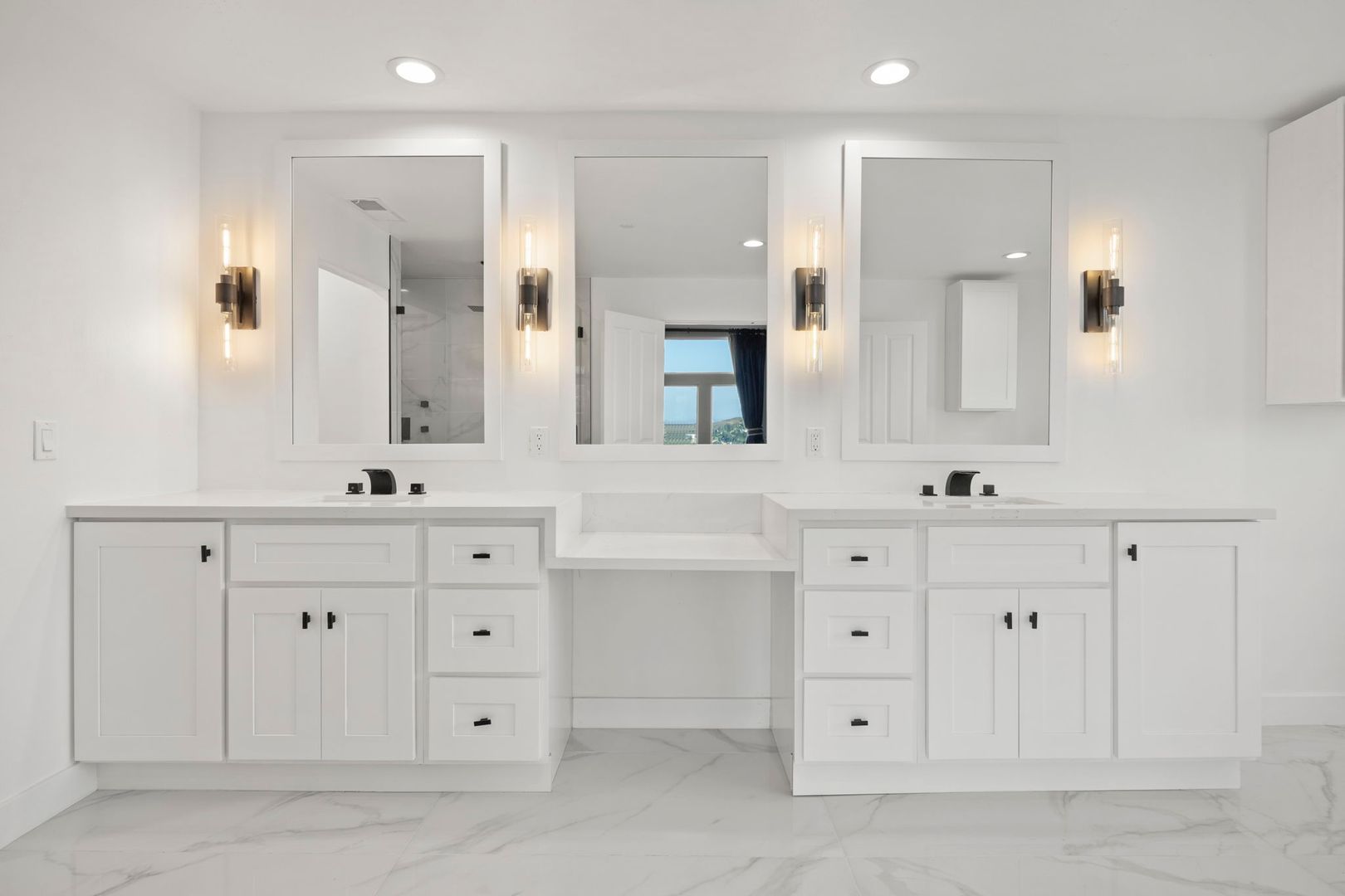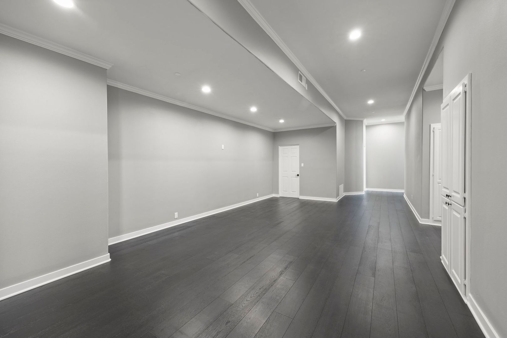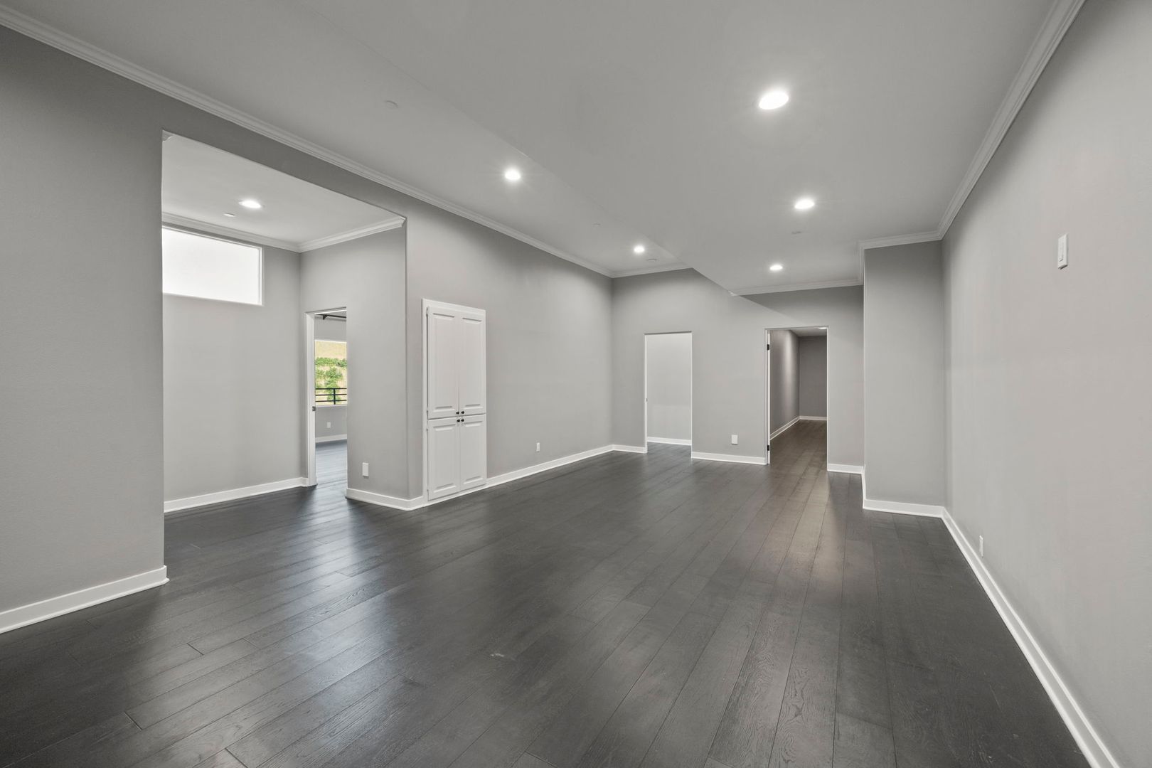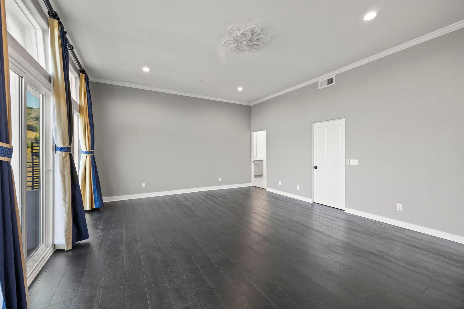 Inside, the floor plan flows beautifully with open-concept living and dining areas, hardwood and tile flooring, and oversized windows that invite the outdoors in. Two spacious primary suites provide luxurious retreats, each with spa-style baths and generous custom closets. A ground-level room offers flexibility as a home office, gym, or guest quarters.